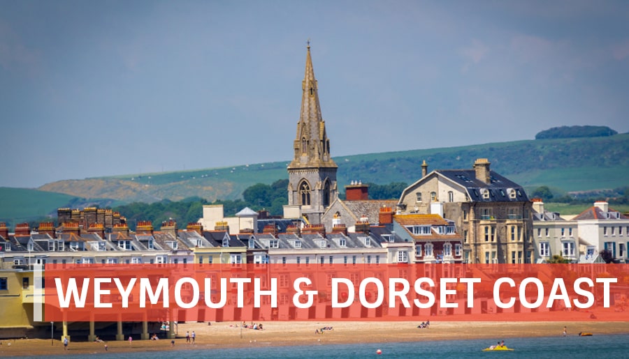 | Weymouth, Dorset | 1,850 | 54,000 | Jurassic Coast, Nothe Fort, Weymouth Harbour |